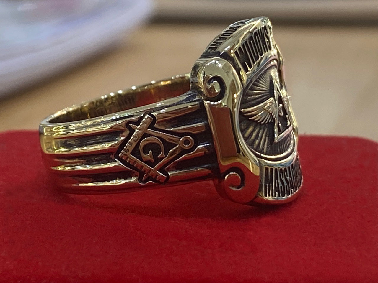 Add in comment your STATE NAME, and symbol choice (with or without square/compass skull & bone), on final page and receive your ring design for approval