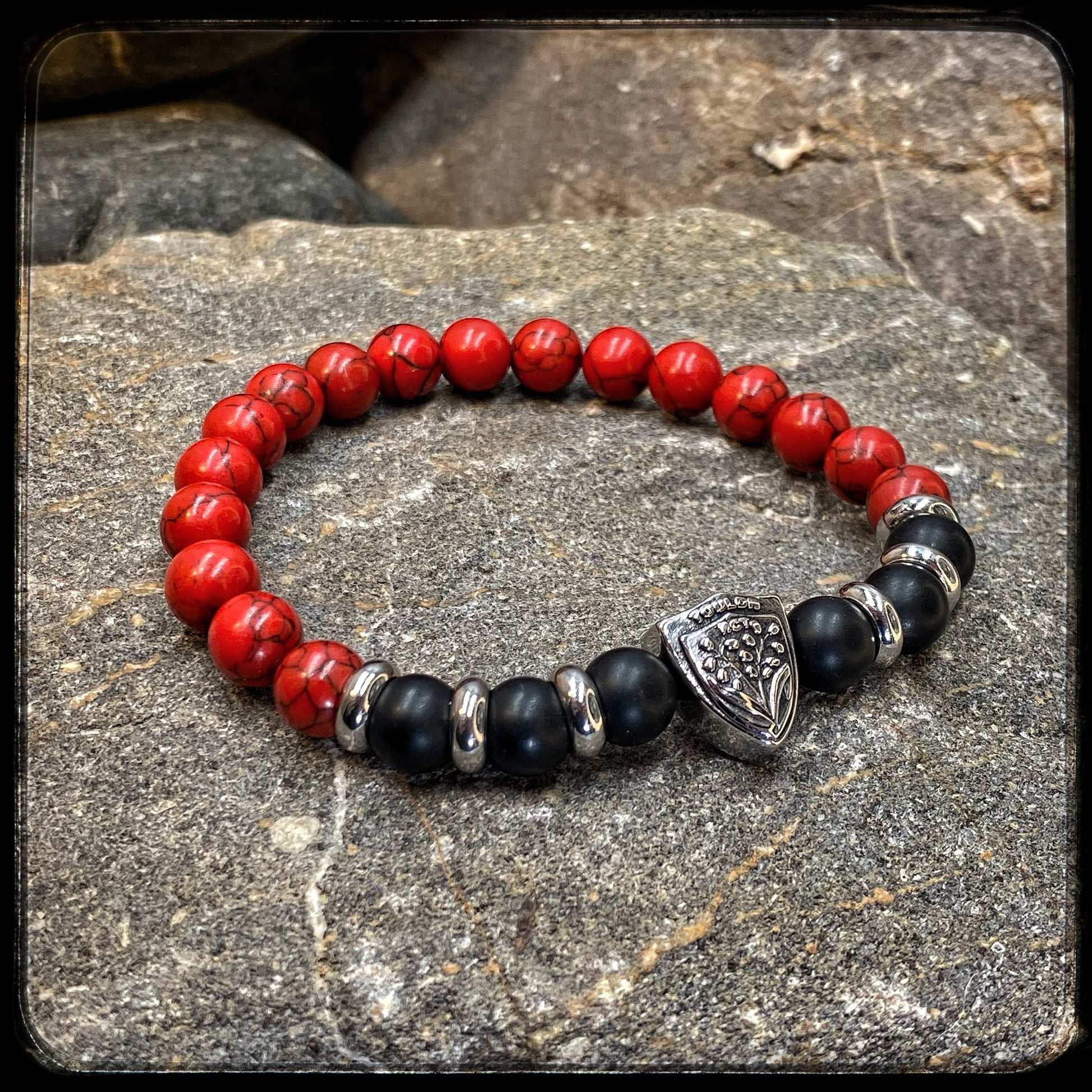 This model, entirely created in our workshops in France, is composed of the RCT coat of arms in stainless steel, and natural red onyx and howlite beads.